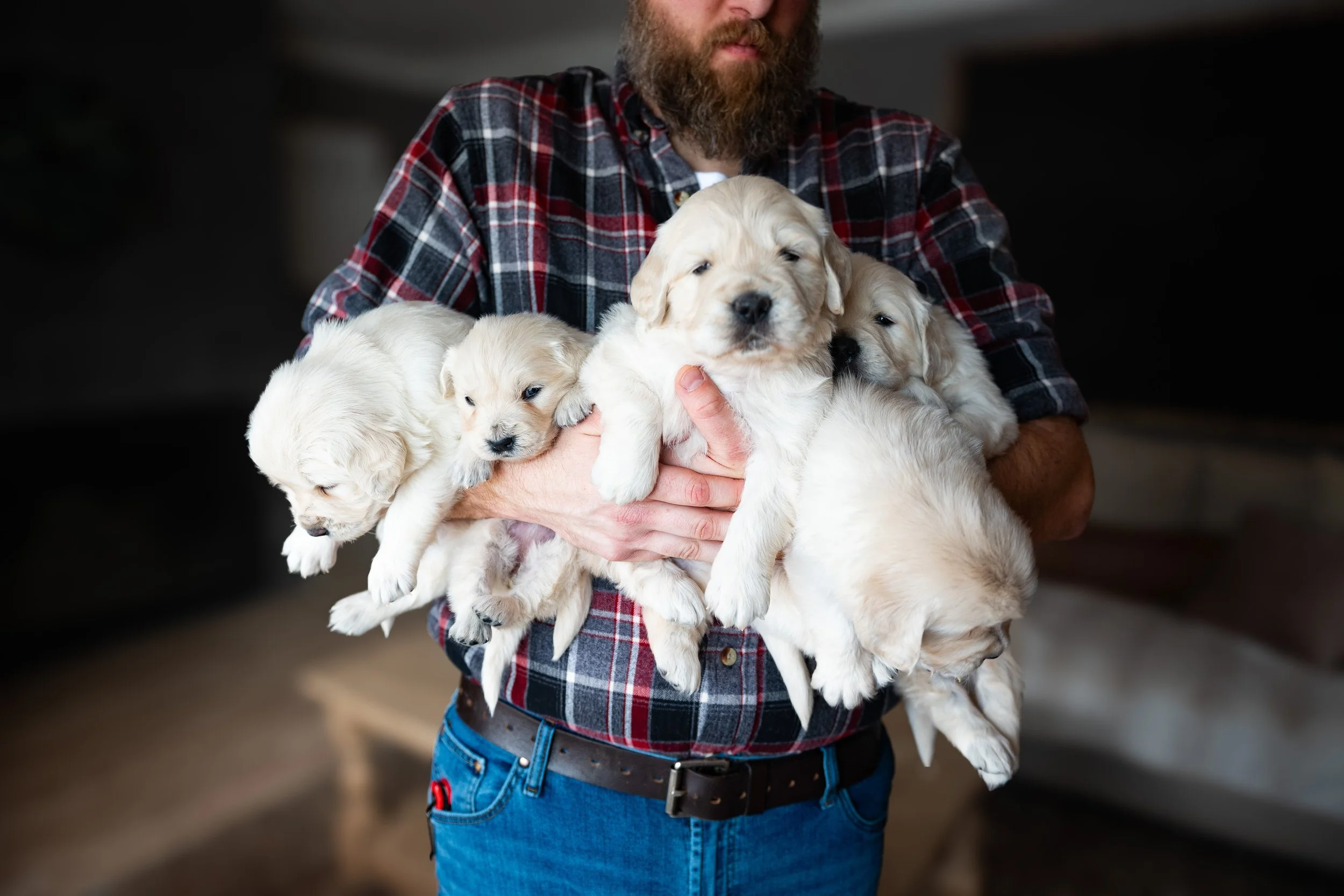 around 4-5 weeks we will start setting up appointments for you come and choose your puppy. we want them to be old enough to tell the type of personality they might have. If you are a active person we will try to help match you with a move active puppy. If you have a more laid back life style we will try to match you up with a calmer puppy. just a reminder -all puppies are extremely active their first few years regardless, some just not as much as others. Ultimately it Is your decision and your new family member. If you can not make the 5 week appointment then we ask hat you call and we can discuss puppies over the phone.